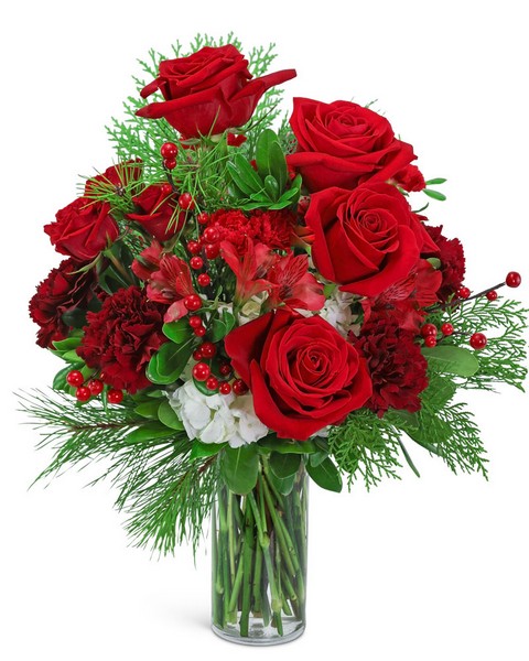 A classic holiday bouquet of flowers, Twilight Berry is a beautiful choice for any occasion. Our expert designers create a joyful design in perfect shades of red and green, featuring carnations, roses, Alstroemeria, and premium foliage and berries to convey your heartfelt holiday wishes. With Christmas just around the corner and New Year's Eve on its way, we're happy to help you brighten both days with a festive bouquet.