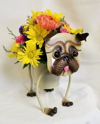 Get ready for the lick. Approx. 10" H (without flowers) x 5 1/2" W x 7 1/2" L Fresh flowers & colors will vary seasonally