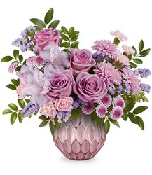 Delight someone special with the enchanting beauty of this Pretty Posy Bouquet, showcased in a stunning mosaic vase with an iridescent finish. This elegant centerpiece is ideal for any occasion and adds a touch of charm to any table setting throughout the year.