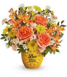 Lift their spirits with the Buzzworthy Blooms Bouquet! Bursting with vibrant flowers and buzzing with charm, this cheerful arrangement is hand-delivered in our Buzzing Bee Well Pot, a sweet ceramic keepsake that's sure to bring smiles and well wishes.